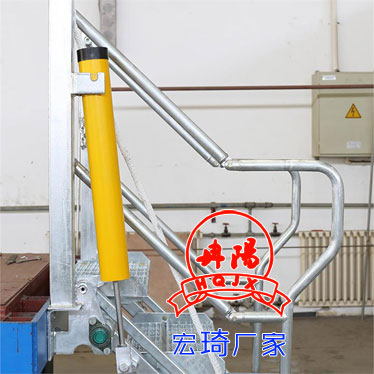 1、確定罐車停放位置合適后,打開安全鉤,取下支架上的的鏈條,將活動(dòng)梯打開擺放