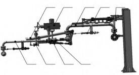 1.平衡缸2.氣動閥門3.一橫關(guān)節(jié)4.液壓缸5.旋轉(zhuǎn)接頭6.二橫關(guān)節(jié)7.切斷閥8.球閥9.法蘭盤