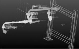 為了便于動力學(xué)分析,將Solidworks中補油裝卸鶴管模型進行簡化并導(dǎo)入adams軟件,如圖6所示.