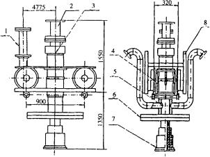 1提升器2鶴管提升汽缸3行走機(jī)構(gòu)4輸油氣管箱5密閉大蓋6分配器7支架8主汽缸9導(dǎo)輪10繩輪