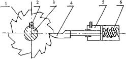 如圖5所示,用一個小型單作用汽缸和棘輪棘爪機(jī)構(gòu)實(shí)行鎖緊。棘輪1裝在繩輪軸3上,棘爪4與活塞連成一體。當(dāng)裝車完成后,繩輪機(jī)構(gòu)將鶴管完全提上來,小汽缸放氣,在壓縮彈簧的作用下,棘爪4伸出,阻止棘輪反向轉(zhuǎn)動,即可達(dá)到鎖緊目的。